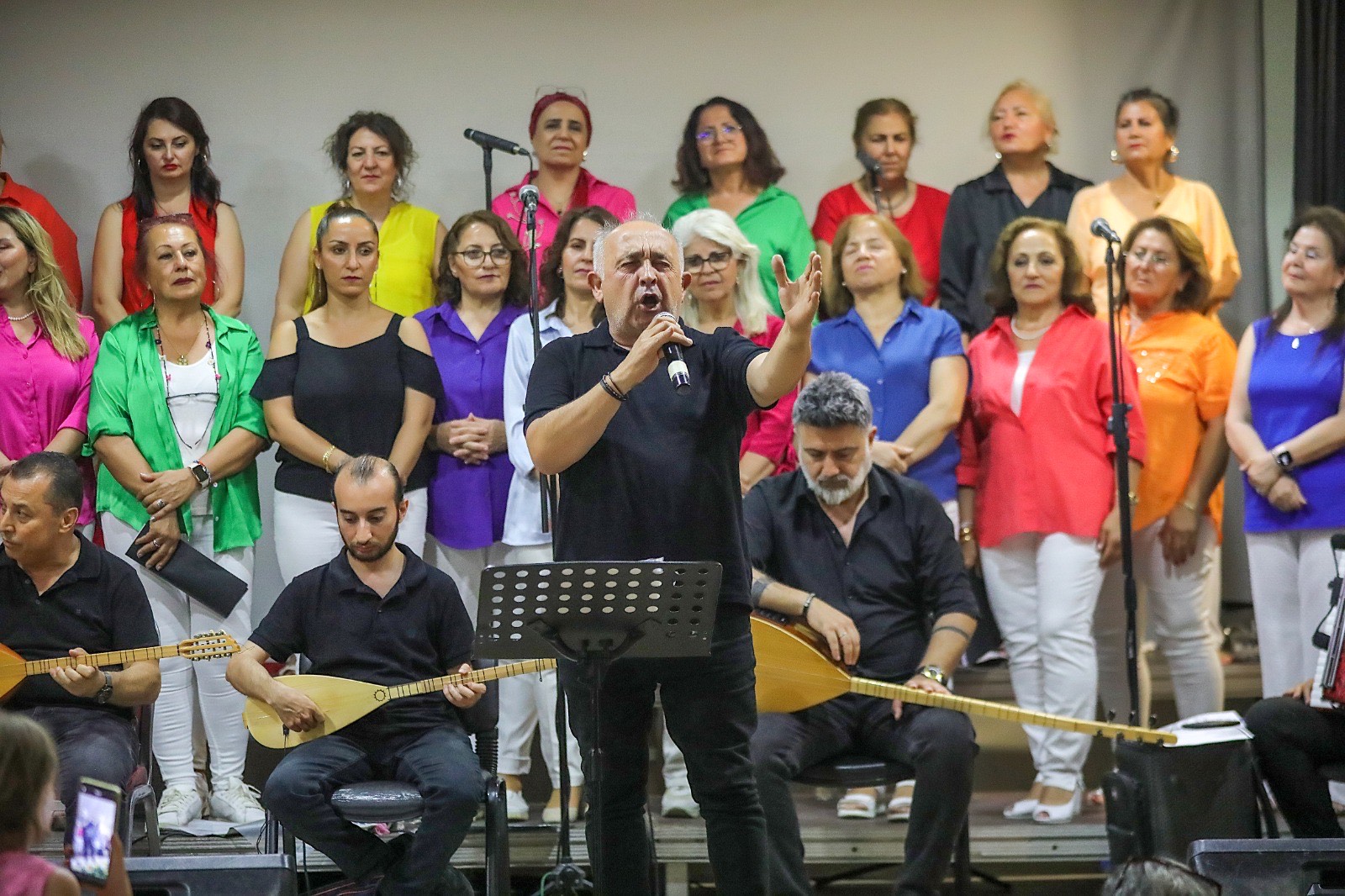 Osmangazi Konferans Salonu’nda eğitim alan Türk Halk Müziği kursiyerleri hünerlerini sergiledi. Birbirinden güzel eserleri başarıyla seslendiren kursiyerlerin Türk Halk Müziği konseri vatandaşlardan yoğun ilgi gördü. Bayraklı Belediyesi İsmet İnönü Kültür Merkezi’ndeki gecede, Türk Halk Müziği kursuna katılan 80 kursiyerden 50’si performans sergiledi. Kursiyerler, Koro Şefi Ayhan Eski Kalcı yönetiminde sahneye çıktı ve performanslarıyla büyük alkış aldı. Etkinliğe CHP Bayraklı İlçe Başkanı Münir Demir, belediye başkan yardımcısı Levent Sayar, belediye meclis üyeleri, muhtarlar ve çok sayıda vatandaş katılarak müzik şölenine ortak oldu.