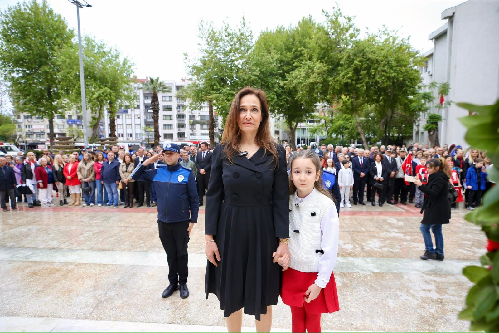 Ailesi ve öğretmeninin de eşlik ettiği küçük başkan, belediye bürokratlarından çocuklara yönelik etkinliklerin artırılmasını istedi. Ayrıca temizlik çalışmalarının daha verimli hale gelmesi için vatandaşlara da sorumluluk düştüğünü hatırlatan Tanrıken, özellikle yerlere çöp atılamaması konusunda uyarılarda bulundu. Ardından Başkan Ünsal ve Defne Tanrıken, Karşıyaka Hükümet Konağı bahçesinde düzenlenen törene katıldı. Atatürk Anıtı’na çelenklerin sunulduğu törende, Ulu Önder Atatürk ile mücadele arkadaşları sonsuz saygı ve minnetle anıldı.