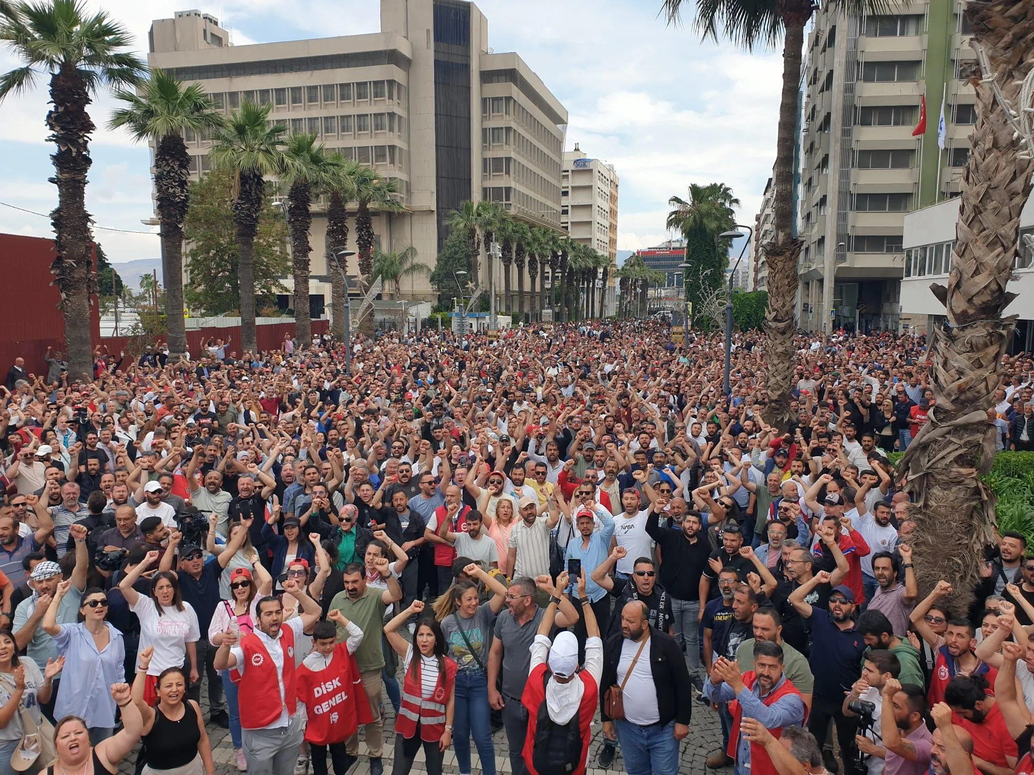 İzmir Büyükşehir Belediyesi’ne bağlı şirketler olan İZELMAN, İZENERJİ ve Egeşehir’de çalışan yaklaşık 23 bin işçi, toplu iş sözleşmesi görüşmelerinin tıkanması sonucu greve gitti. Grev, üçüncü gününde İZSU Hizmet Binası önünde yapılan kitlesel buluşma ve Kültürpark yürüyüşüyle sürdü.