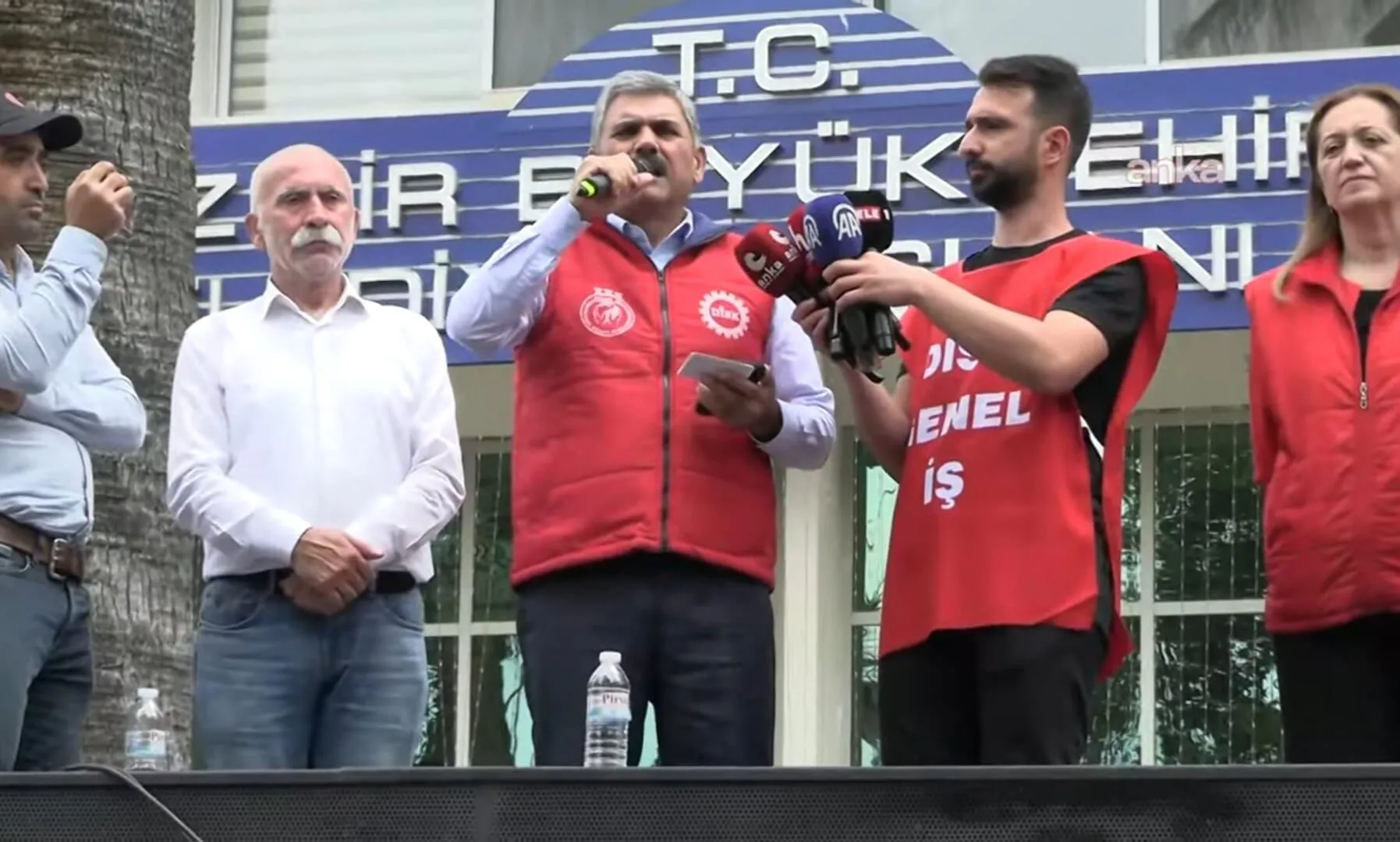 Genel-İş Sendikası Genel Başkanı Remzi Çalışkan, işçilere hitaben yaptığı konuşmada, “İşçilerin taleplerine herkesin saygı duyması gerekiyor. Aynı işi yapan işçiler arasında ücret farkı kabul edilemez. Eşit işe eşit ücret verin, bugün bu grev bitsin” dedi.