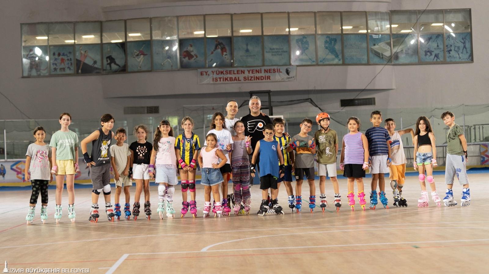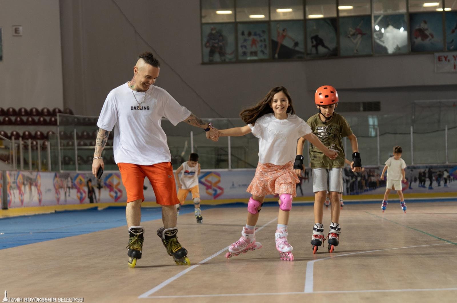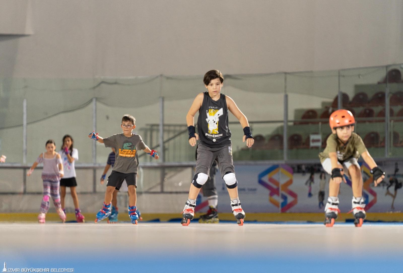 İzmirli çocuklara tekerlekli paten eğitimi veren Buz Hokeyi Başantrenörü Mehmet Balkaya, “Normalde yazları buz pistini kapatıyorduk, bu sene parke bir zemin yapıldı. Onun üzerinde tekerlekli paten eğitimi veriyoruz. 5 yaş ve üzeri herkes kurslarımıza katılabiliyor. Kurs ücretimiz bin lira, ayda sekiz dersimiz var” dedi.