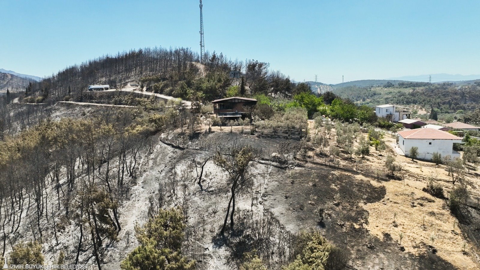 İzmir Büyükşehir Belediyesi, Aliağa Bozköy Mahallesi ve Foça Ilıpınar’da yerleşim yerlerine ulaşan orman yangınının ardından yaraları sarmak için teyakkuza geçti. İzmir Büyükşehir Belediyesi İtfaiye Dairesi Başkanlığı ekipleri, gece boyunca Aliağa Bozköy Mahallesi’nin bulunduğu alandaki orman yangınını kontrol altına alarak soğutma çalışmalarını tamamladı. Soğutma çalışmalarının ardından köylerdeki hasarın bilançosu gün yüzüne çıkarken, İzmir Büyükşehir Belediye Başkanı Dr. Cemil Tugay ve Büyükşehir bürokratları sahada hasar tespit çalışmalarına başladı. Bölgedeki yurttaşlara geçmiş olsun dileklerini ileten Başkan Dr. Cemil Tugay, talepleri dinledi eksiklerin giderilmesi için talimat verdi.