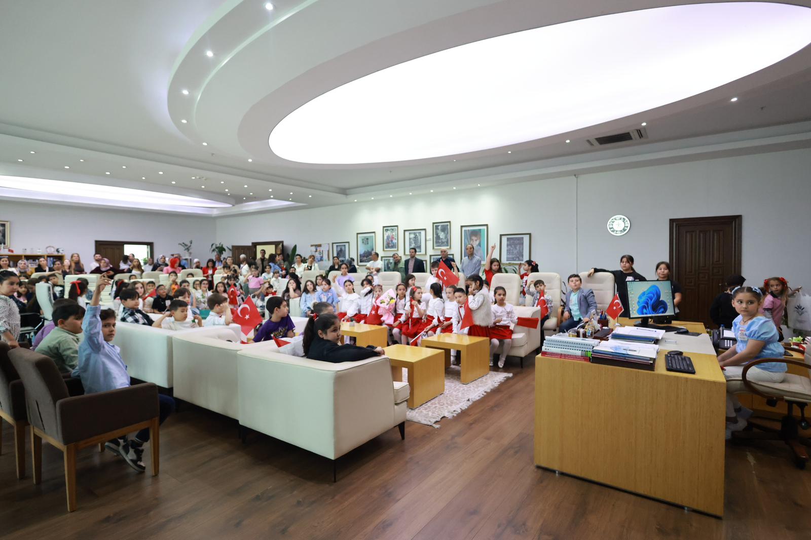 Meclis oturumunun ardından Başkan Kınay, çocukları makam odasında ağırlayarak koltuğunu temsili olarak devretti. Mahallelerden gelen öğrencilerle tek tek fotoğraf çektiren Kınay, belediyenin yürüttüğü çalışmaları da dijital ekran üzerinden anlattı.