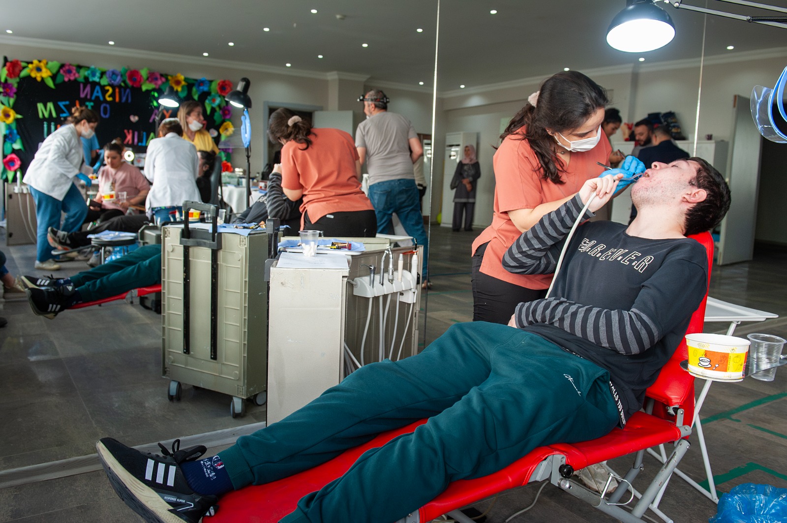 Mustafa Kemal Mahallesi’nde bulunan ve özel bireylerin sosyalleşme noktası olan merkezde düzenlenen taramaların ilk günü, merkezin kayıtlı üyelerine ayrıldı. Öncelikle, merkezden düzenli hizmet alan 25 özel öğrencinin diş kontrolleri ve tedavileri yapıldı. Uzman diş hekimleri, bireylerle tek tek ilgilenerek ağız sağlığının korunması konusunda hem öğrencileri hem de ailelerini bilgilendirdi. İhtiyaç duyan üyelerin temizlik, dolgu, çekim gibi tedavileri de titizlikle gerçekleştirildi. Ertesi gün de devam eden sağlık taramasında, dışarıdan başvuran 25 bireyin daha diş bakımları tamamlandı. Toplamda 50 özel gereksinimli bireyin yararlandığı bu hizmetle, ağız ve diş sağlığı konusunda farkındalık oluşturulurken, ihtiyaç duyan bireylere tedavi desteği verildi.