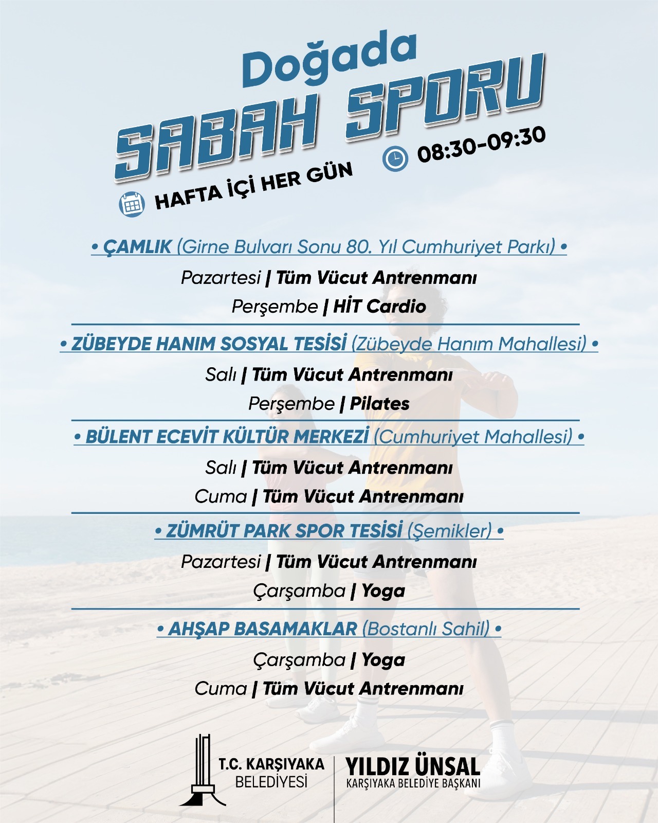 Nitelikli ve erişilebilir spor etkinlikleri düzenleyerek ‘sağlıklı toplum’ hedefine katkı sunmak için çalıştıklarını söyleyen Karşıyaka Belediye Başkanı Yıldız Ünsal “Sabah aktiviteleri ile vatandaşlarımızın fiziksel sağlığını desteklerken, sosyalleşmeleri için de fırsat sunuyoruz. Güne zinde ve keyifli şekilde başlamak isteyen tüm Karşıyakalıları, 5 farklı noktadaki etkinliklerimize bekliyoruz. Aktif ve sağlıklı bir yaşam için sporu desteklemeye, her yaştan vatandaşlarımıza yönelik kaliteli ve erişilebilir spor olanakları yaratmaya devam edeceğiz” diye konuştu.