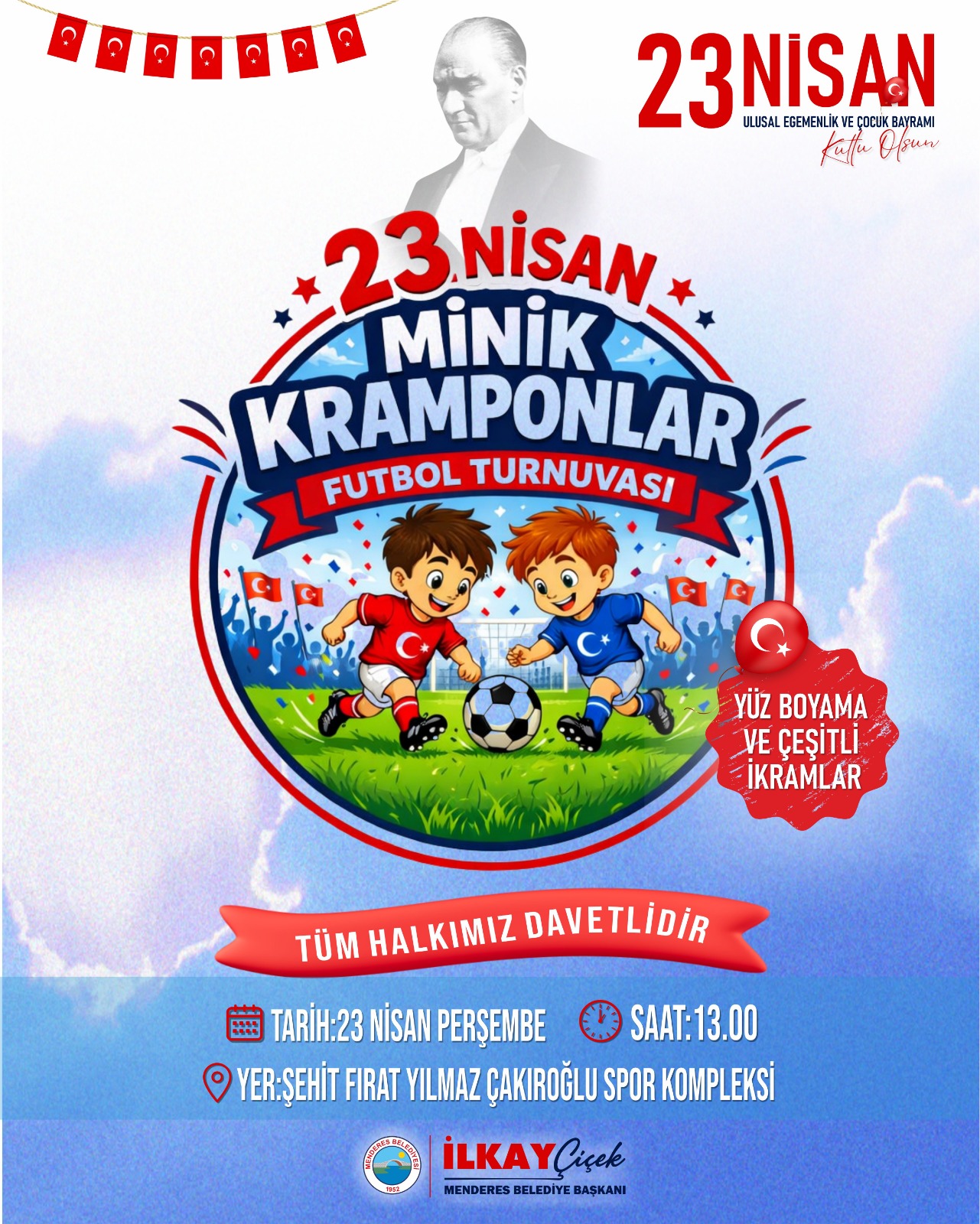 Menderes Belediyesi, 23 Nisan Ulusal Egemenlik ve Çocuk Bayramı kapsamında düzenleyeceği “Minik Kramponlar Futbol Turnuvası” ile bayram coşkusunu sahalara taşıyor.