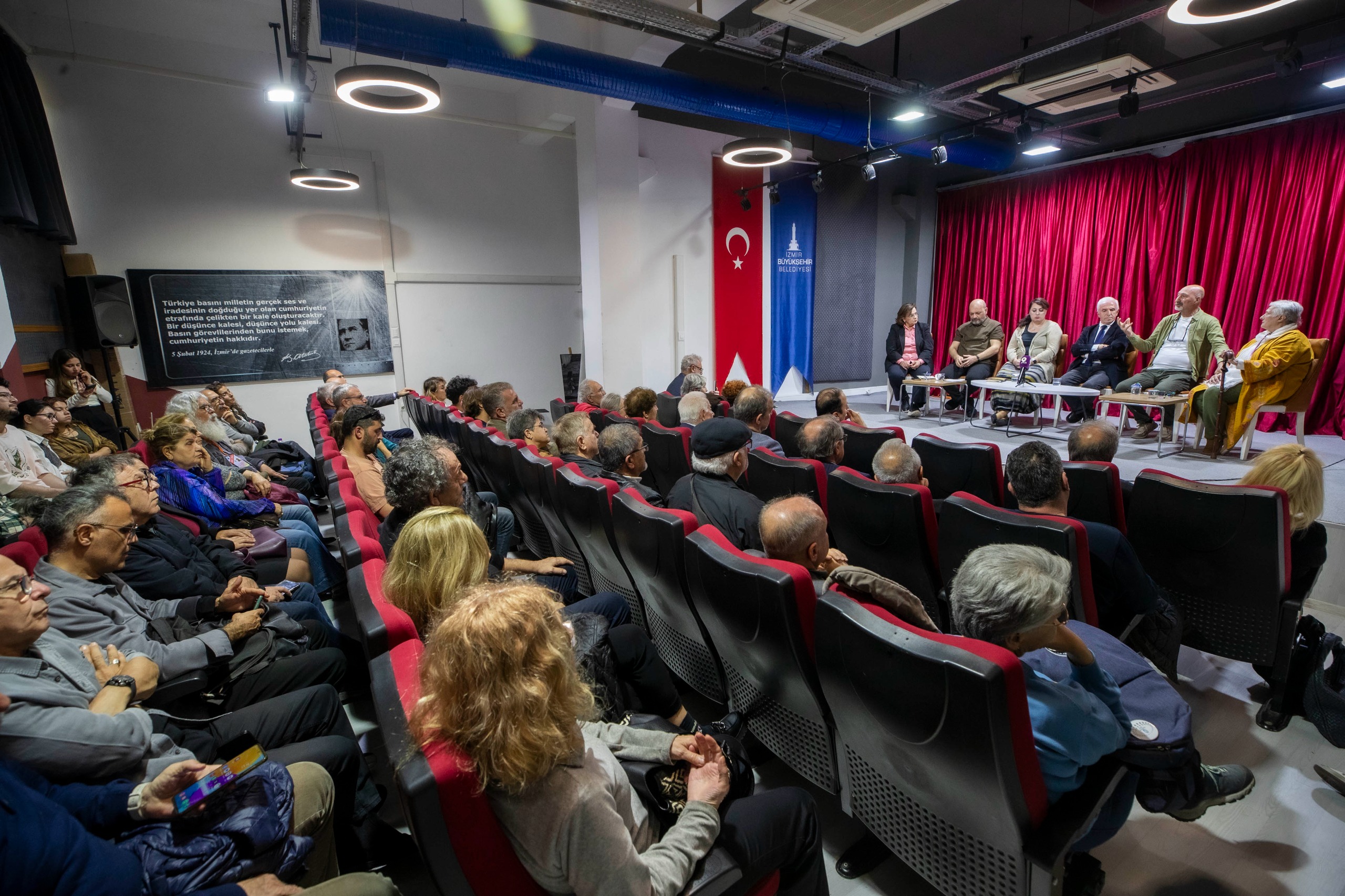 İzmir Gazeteciler Cemiyeti Başkanı Dilek Gappi, Başkan Yardımcısı Mehlika Gökmen, Genel Sekreter Reşat Yörük, Sayman Tolga Albay, Yönetim Kurulu Üyeleri Esat Erçetingöz, Yılmaz Coşkun, Turgay Pasinligil, Erhan Taşdemir’in ev sahipliğindeki söyleşide; kalemini satmayanların bedelini canlarıyla ya da özgürlükleriyle ödediği vurgulanırken, hakikat mücadelesinin asla bitmeyeceği mesajı verildi.