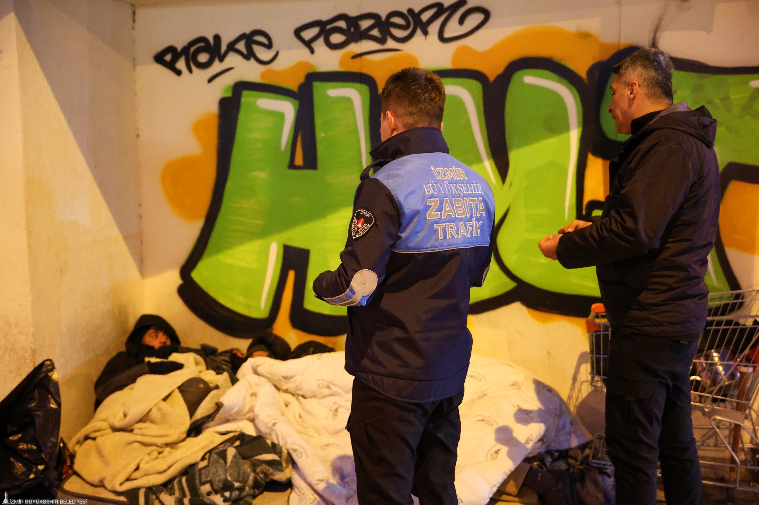 İzmir Büyükşehir Belediyesi Zabıta Dairesi Başkanlığı ekipleri; parklar, sahil şeritleri, köprü altları, kaldırımlar ve ATM kabinleri gibi alanlarda sabahtan gece geç saatlere kadar denetim ve saha çalışmaları gerçekleştiriyor. Sokakta yaşayan yurttaşlarla birebir görüşmeler yapan ekipler, mevcut barınma olanakları hakkında bilgilendirme yapıyor.