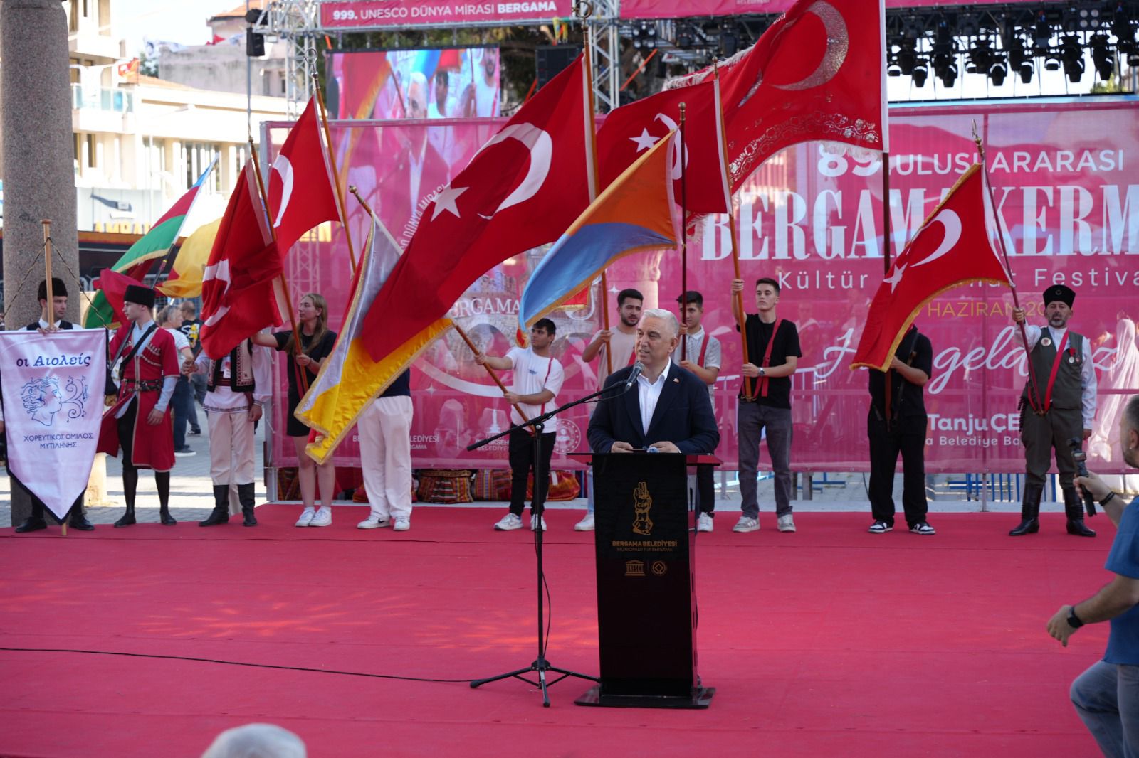 “89 yıldır aralıksız süren bu eşsiz kültür mirası sadece Bergama’nın değil, Türkiye’nin ve hatta dünyanın ortak değeridir. 13 Nisan 1934 yılında Ulu Önderimiz Mustafa Kemal ATATÜRK’ÜN Bergama ziyaretinde “Bu memlekette bir müze kurun. Bir panayır yapın.” Demiştir. Bu sözü üzerine alan dönemin İzmir valisi 1937 yılında Türkiye’nin ilk, Fransa’nın Nice şehrinden sonra dünyada ikinci olan festivalin başlamasına öncülük etmiştir. O günden bugüne Bergama Kermesi’miz kesintisiz taşımaya devam etmekteyiz. Bizden sonra da eminim devam edecektir. Hepimizin bildiği gibi Bergama’mız antik çağdan bu yana Roma, Bizans ve Osmanlı İmparatorluklarına beşiklik yapmıştır. Doğasıyla, güzellikleriyle, Bakırçay nehriyle beraber eşsiz bir memlekette yaşamaktayız. Bu güzel memleketimize sahip çıkmaya hep birlikte devam edeceğiz. UNESCO Dünya Mirası listesinde yer alan Bergama’yı gelin birlikte yeniden keşfedelim. Gelin, görün ve kalın! Kermes bizimdir, hepimizindir.”
